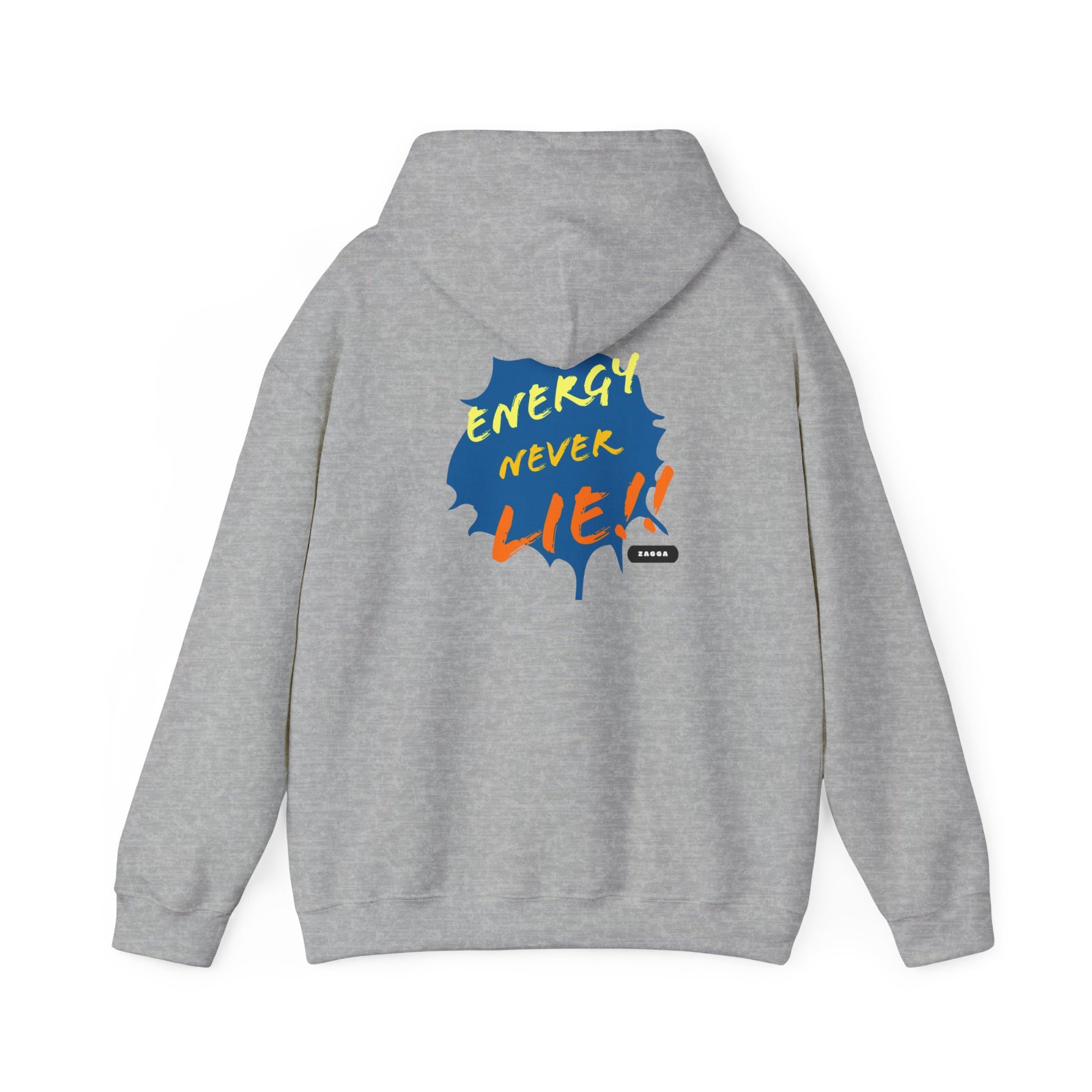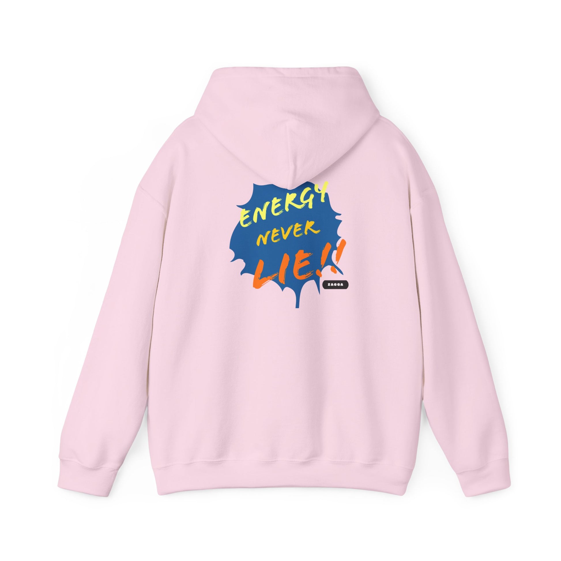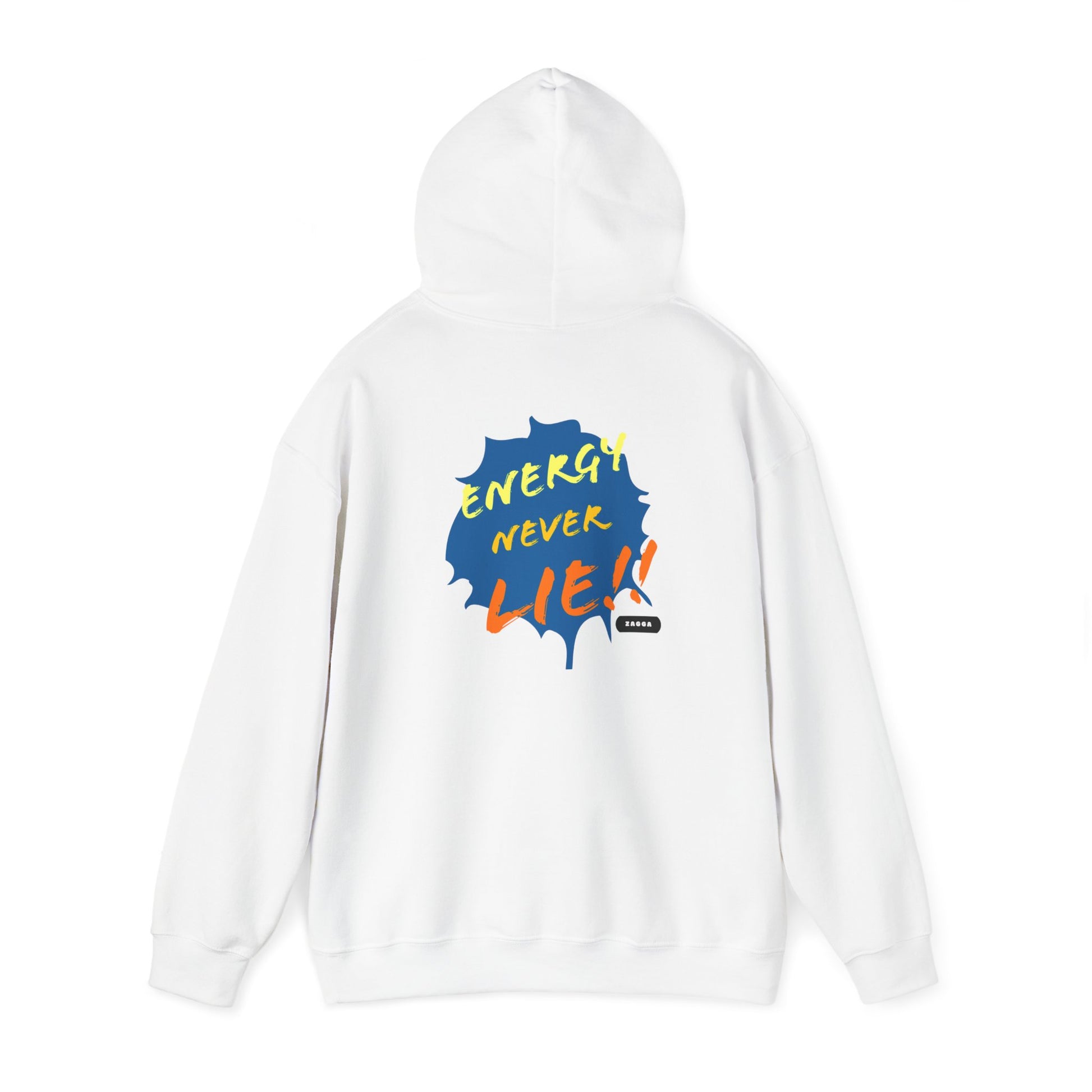 From the Energy Never Lie collection This unisex heavy blend hooded sweatshirt is relaxation itself. Made with a thick blend of cotton and polyester, it feels plush, soft and warm, a perfect choice for any cold day. In the front, the spacious kangaroo pocket adds daily practicality while the hood's drawstring is the same color as the base sweater for extra style points.